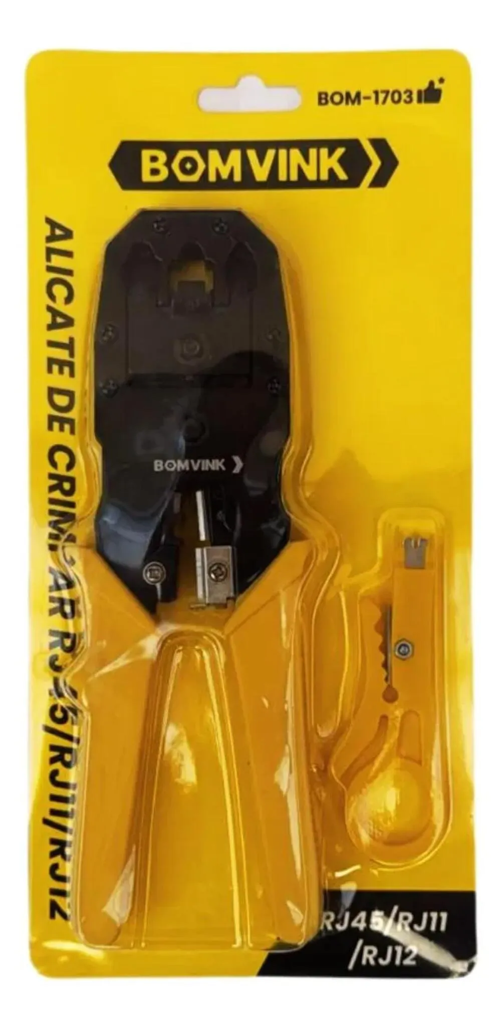 O Alicate de Crimpar Bomvink BOM-1703 foi desenvolvido para garantir precisão, eficiência e durabilidade em trabalhos de instalação e manutenção de redes de dados e telefonia. Compatível com conectores RJ45, RJ11 e RJ12, é ideal para profissionais de TI, técnicos em telecomunicações, instaladores e usuários domésticos.