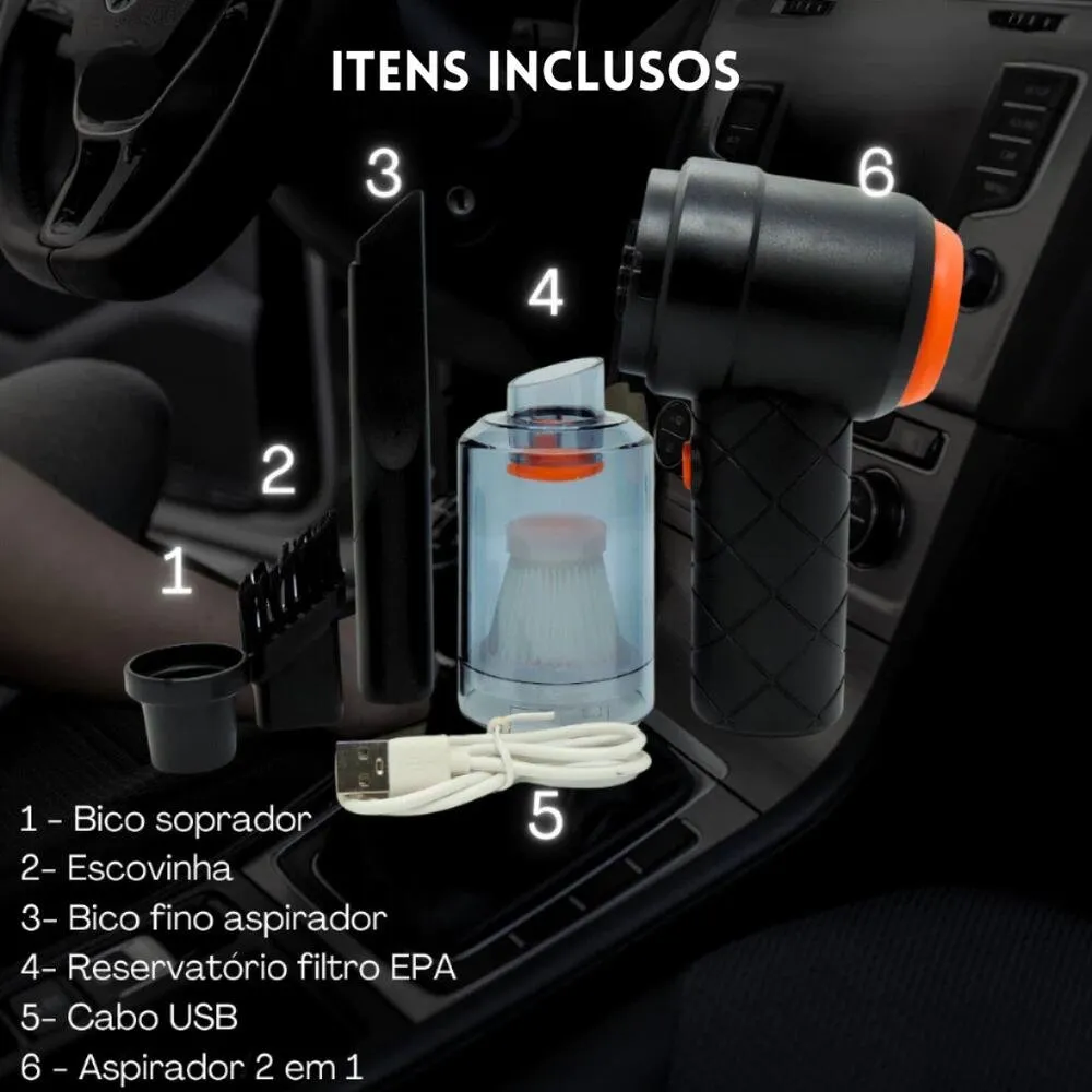 Aspirador e Soprador Portátil 2 em 1 Recarregável – Compacto e prático para limpeza