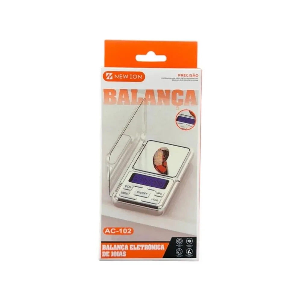 A Balança Digital AC-102 New-Ion é uma balança eletrônica portátil projetada para medições de alta precisão de pequenos itens como joias, metais preciosos, moedas, pedras, suplementos e outros objetos leves. Conta com visor LCD de fácil leitura, função tara para subtrair o peso de recipientes, botões de seleção de unidade (g/ct/oz/dwt etc.) e sistema de desligamento automático para economia de energia. Sua plataforma compacta e leve é ideal para uso em joalherias, lojas especializadas, feiras, colecionadores ou aplicações domésticas que exigem precisão. A alimentação normalmente é por baterias (ex.: AAA) ou pilha tipo botão (dependendo da versão), proporcionando mobilidade e praticidade.