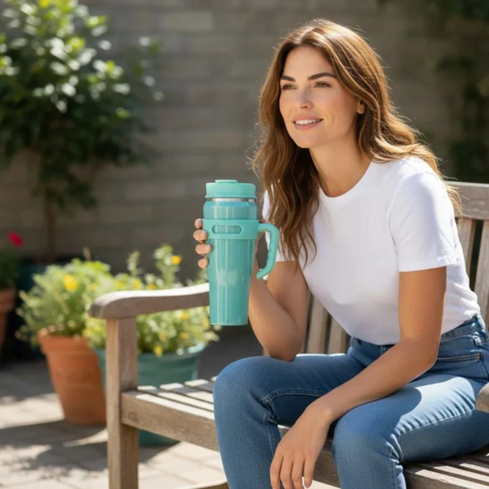 Fabricada em aço inox de alta qualidade, proporciona maior durabilidade, resistência à corrosão e fácil higienização. Acompanha canudo de metal reutilizável, que garante maior sustentabilidade e praticidade no consumo das bebidas.